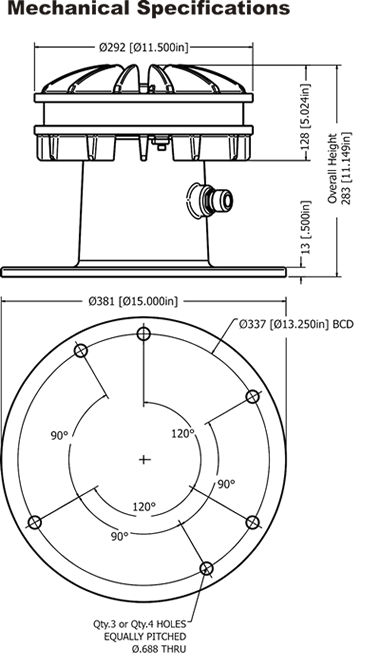 Supplied with 3m (10ft) of fully shielded 3-conductor cable Custom mounting options available upon request Electrical Specifications Input Voltage: 115VAC/230VAC (nominal) Environmental Specifications Temperature: -55°C to +55°C (-67°F to 130°F) Other Features Integrated Flasher Assembly Photometric Specifications Meets or exceeds:
